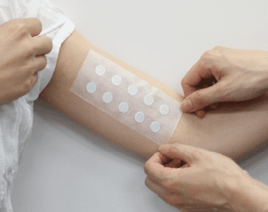 低刺激性と機能性を確認するために製品の機能や用途に合わせて様々な試験を実施しています。 例えば、皮膚に散布した際や眼に入った際の刺激性を確認するために、パッチテストや眼刺激性試験(細胞での代替法)を実施しています。他にも、使用した場合に刺激感がないかを確認する スティンギングテストや、ニキビの原因になるかどうかを判断するノンコメドジェニックテストなども実施しています。 大学病院をはじめとした医療機関にて使用試験を実施しており、その結果は皮膚科系の各種学会誌に論文として掲載されることもあります。
