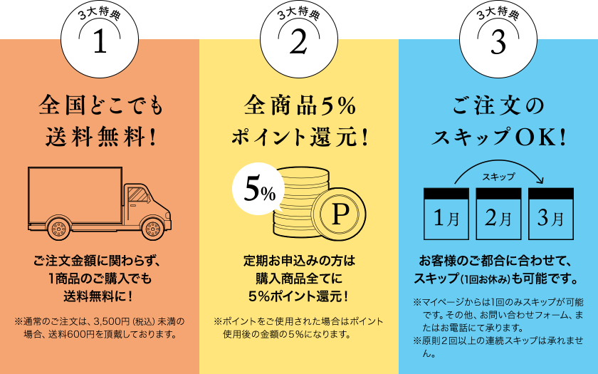 ※定期お届け便は3回以上のお届けをお願いしております。3回未満で解約された場合、ポイントが失効されますので予めご了承ください。
